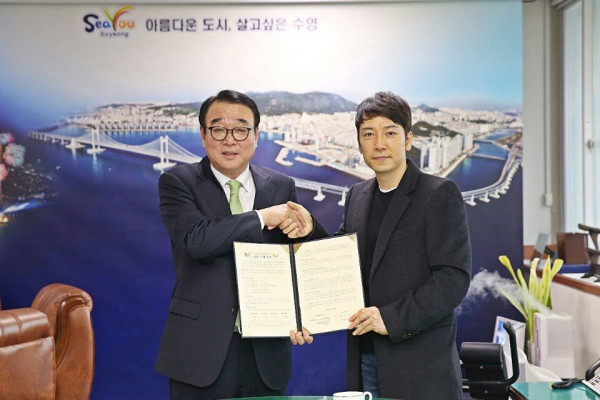 박현욱 수영구청장님과 이영철 대표는 앞으로의 성공적인 사업 진행을 약속했습니다.