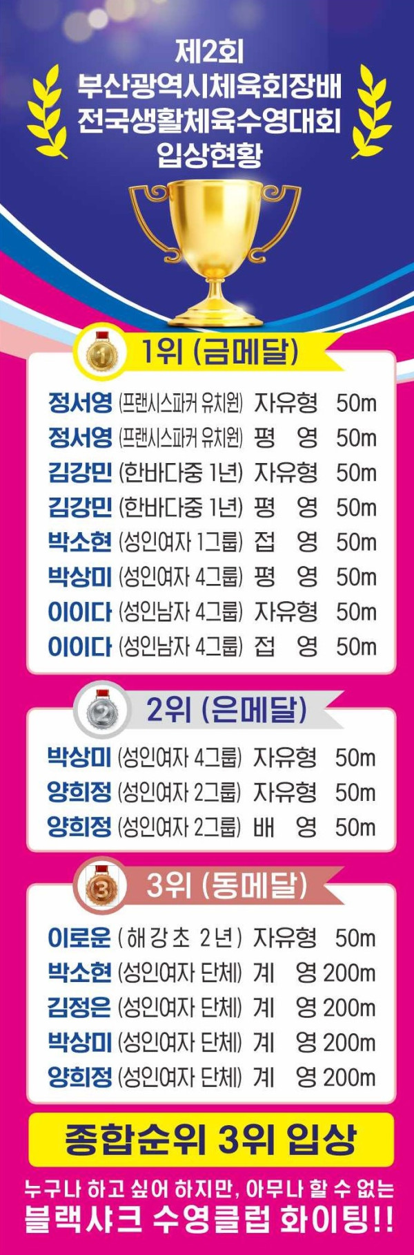 <제2회 부산광역시 체육회장배 전국 생활체육 수영대회> 페이지 정보 작성자 최고관리자 댓글 0건 조회 507회 작성일 24-09-06 14:41 본문 목록 이전글< 2024 여름방학특강 공개수업♥ > 24.09.19 다음글<제14회 대구광역시배 전국마스터즈 수영대회> 24.07.11 댓글목록 댓글목록 등록된 댓글이 없습니다.